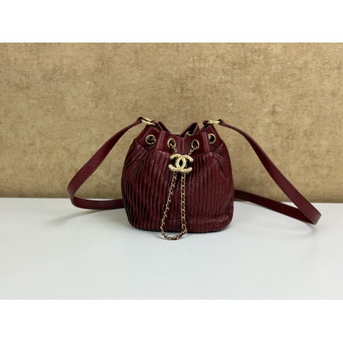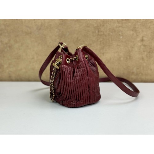 CHANEL MINI PLEATED LEATHER CC DRAWSTRING BUCKET BAG