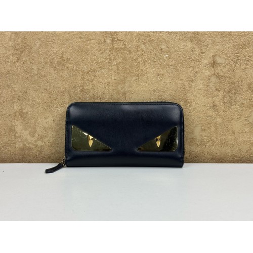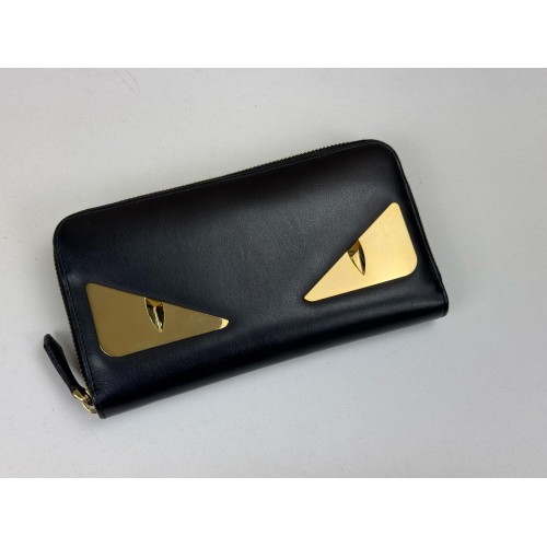FENDI 7M0210 MONSTER EYES ZIP AROUND LEATHER WALLET